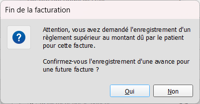 Si la case « le trop-perçu est abandonné par le patient » n’est pas cochée, la fenêtre suivante apparaîtra :